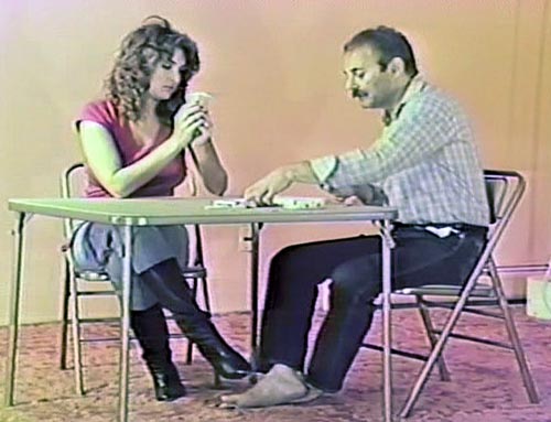 Scene 1 shows Treena and Jud playing cards at a table and she becomes angered by his attitude, as she proclaims,” If you don’t shut up I’m going to sit on you.”