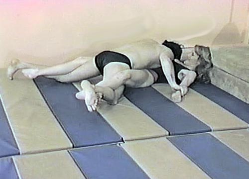 Ignoring his cries of submission she traps him continuously in painful holds and oh so very effective is her use of some great and punishing head scissors of all varieties – reverse, standing, figure 4 etc. and she seem to take such gleeful delight in almost suffocating her smaller male for, first with her breast and then with her crotch while pinning him.
