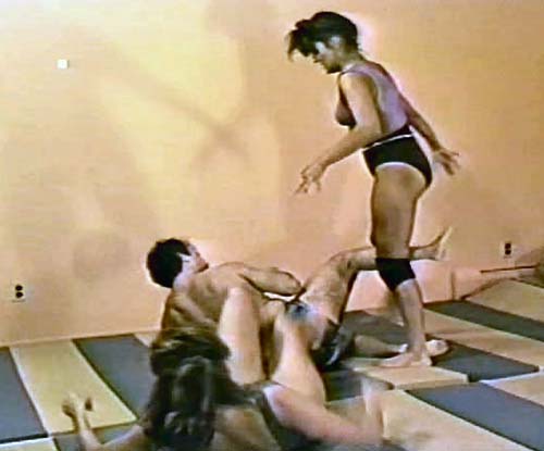 Tough and skilled, the powerful Cheeta employs her pro wrestling techniques, as well as he amateur wrestling background, to work so effectively with the sexy and always mean brunette bombshell, Treena as they take great delight in taking Jim apart as no holds are barred in this fight.