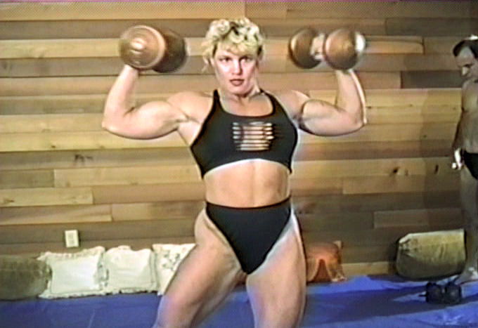 World-class body builder and strong woman Sally McNeil visits the Joan Wise Club for a workout. Jim makes a