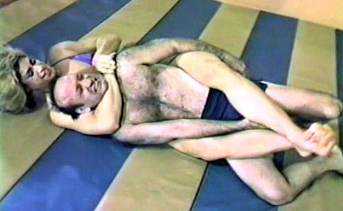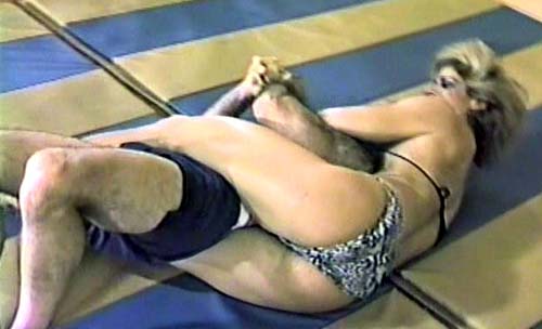 The fabulous Larissa goes to work on Jeff as soon as the bell rings and is he in serious trouble as the sexy body builder flips, squeezed and dominates the small male half to death as she demonstrates a fine knowledge of wrestling holds.