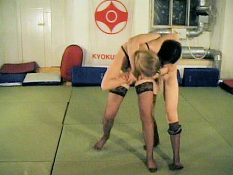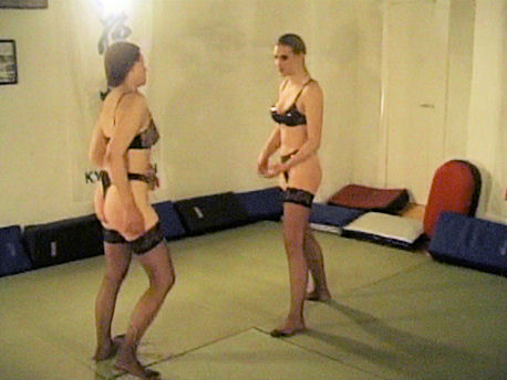 This exciting video features brunette Liliane returning to the mat to accept a challenge from 20-year-old blonde Sandra. The action