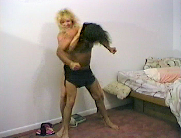 Dynamite blond, athletic, 140 lb Angie takes cocky Ken apart. Rough, intense wrestling and fighting as Angie's relentless attack has her victim fighting for his life.