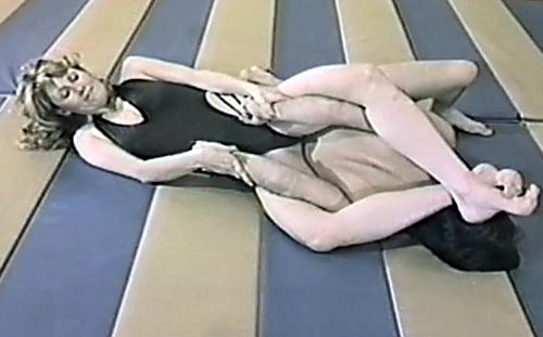 Roxanne looks smashing in her black bathing suite and from the onset of this serious wrestling match it is very obvious that she has become a very skilled wrestler since we have last seen her at the Joan Wise Club.
