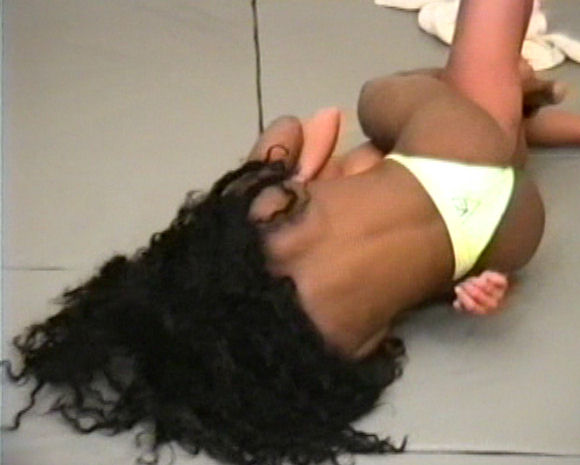 Lorraina (5'7", 130 lbs.) is black and proud of it, and there is a tension in the air as she comes to grips with Kim,