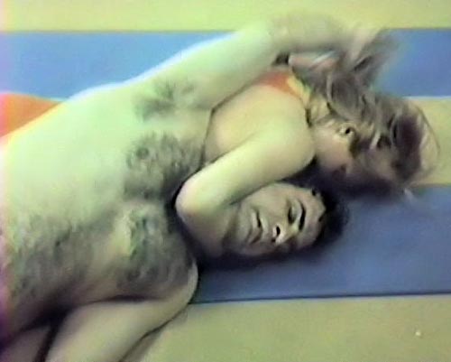 Roxanne Baxter, 5’9”, 148 pounds, possessing a beautiful face, gorgeous body and fierce determination, takes on and soundly trounces a tough male opponent in a super wrestling match highlighting great scissor action.
