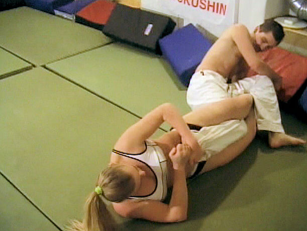 Sandra, great-looking, 6 feet tall, 20 years old, and a fighting machine, takes hated male Michail apart.